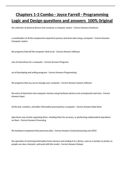 Download PROGRAMMING DESIGNANDLOGIC ANSWERS JOYCE FARREL Paperback